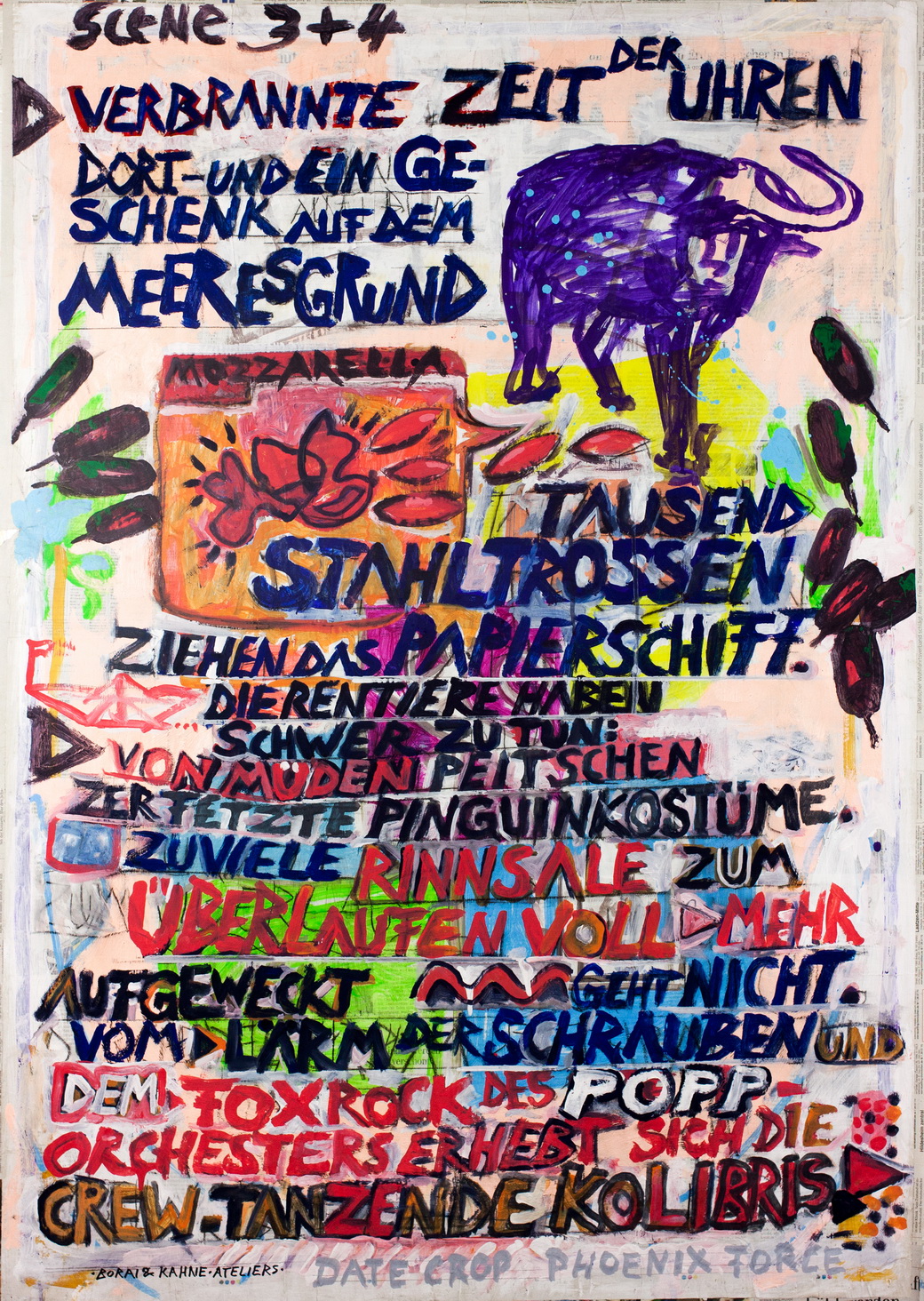 Titania Signal – Contact • 1-8 painting on newspaper, acrylic, 8 sheets, sheets 1-7, scene • 01- 12, sheet 08 epilogue, ~112x79cm 2019 2Titania-3-4 Bild 2 von 8 1Titania-1-22Titania 3-43Titania-54Titania-65Titania 7-86Titania 9-107Titania 11-128Titania-12